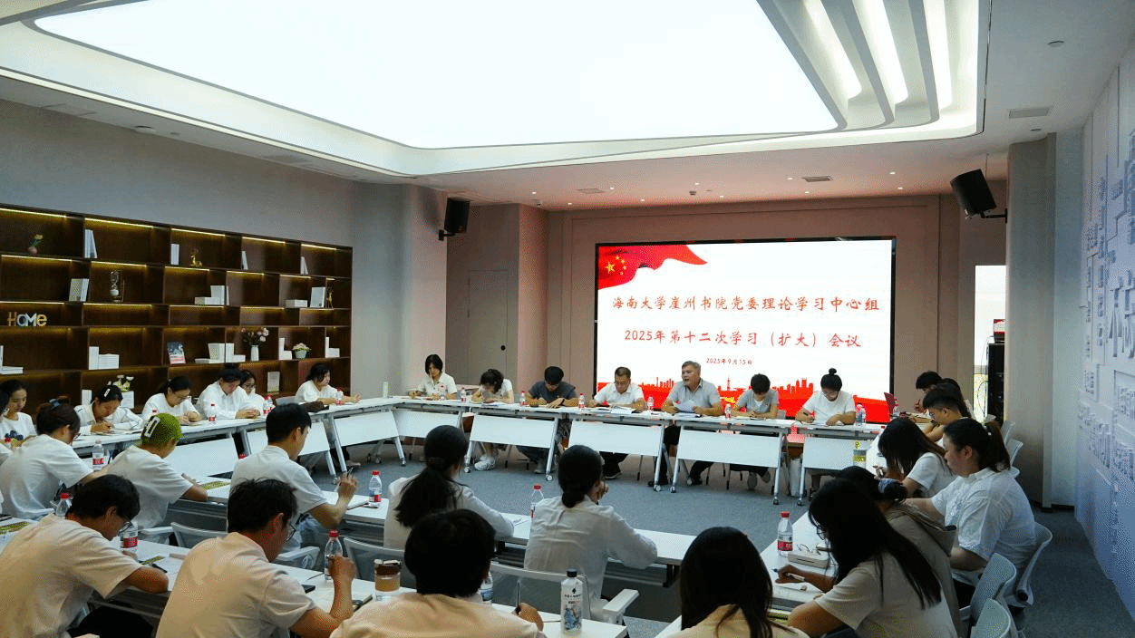2025年9月15日上午,yl88858永利官网yl88858永利集团党委在南繁众创中心二楼党员会议室召开2025年第十二次理论学习中心组学习(扩大)会议。书院党委书记郑中兵主持会议,书院党委委员、全体辅导员、各党支部书记及主要学生干部参加学习。